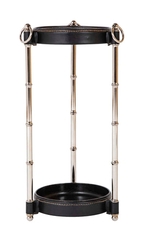 Leather and Metal Umbrella Stand Attributed to Jacques Adnet