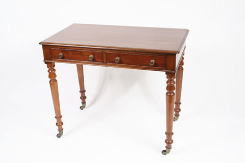 Mahogany Two Drawer Side Table Mahogany two drawer side table with turned legs and castors, English.