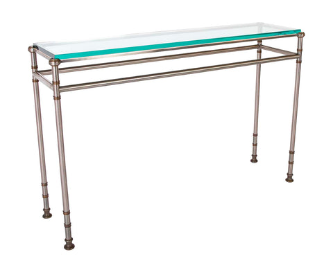 A glass top Maison Jansen patinated bronze console table. Circa 1955-1970