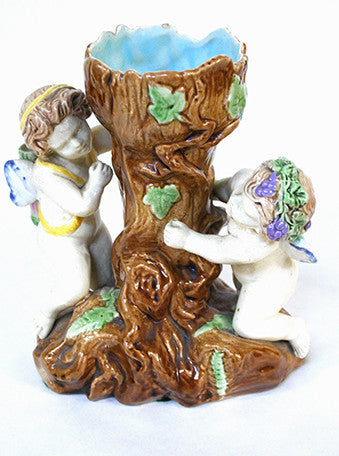 Majolica Spill Vase With Cherubs