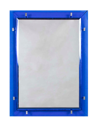 Max Ingrand for Fontana Arte Mirror with Blue Beveled Glass Frame