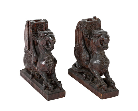 Mid 19th Century hand carved wooden mantle Griffins. Possibly English.