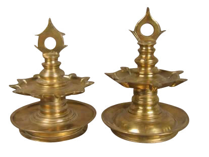 A near pair of Dutch "Amsterdam" brass oil lamps each in two parts.