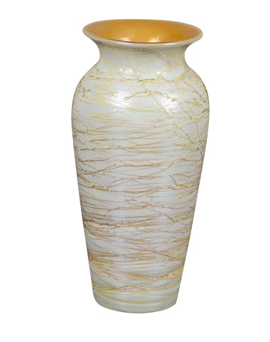 An opal white with yellow threading vase with bright gold interior by Durand; shape 1708.