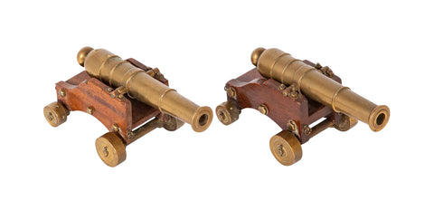 Pair of 19th Century Brass Signal Cannons on Wood Bases
