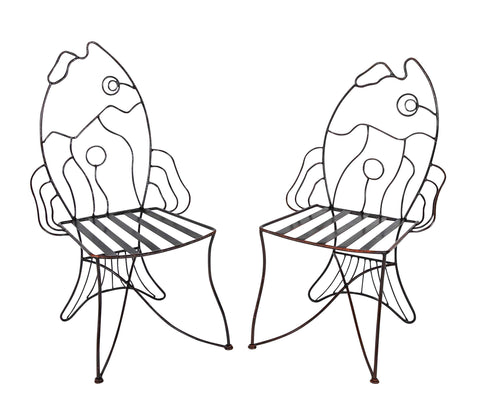Pair of Black Painted Iron Chairs After John B. Salterini