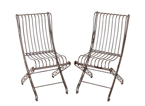 Pair of English Victorian folding garden chairs of iron. 19th century.