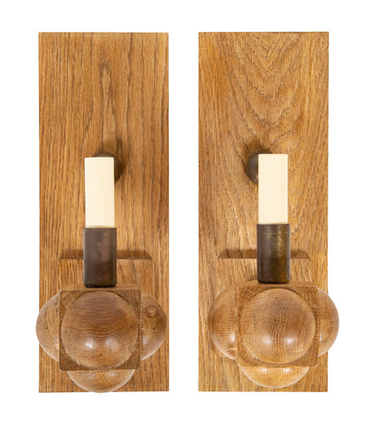 Pair of Foursquare Oak Sconces by Paul Marra - Two Pair Available