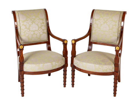 Pair of French Mahogany Frame Armchairs Attributed to Jean-Baptiste Demay
