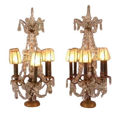 A pair of six light bronze and crystal, late 19th century girandoles.