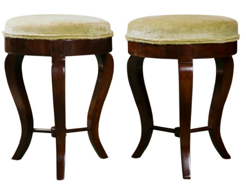 A pair of Italian, three-legged, mahogany Neoclassical stools.