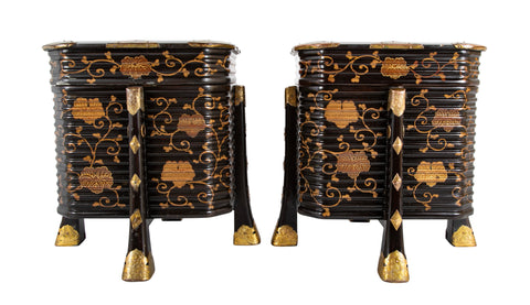 Pair of Japanese Black & Gold Lacquer Samurai Hakko Bako Boxes