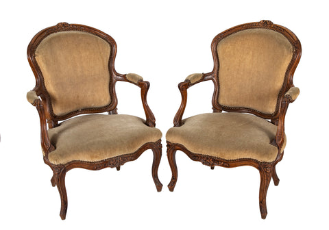 Pair of Late 18th Century Louis XV Carved Walnut Fauteuils