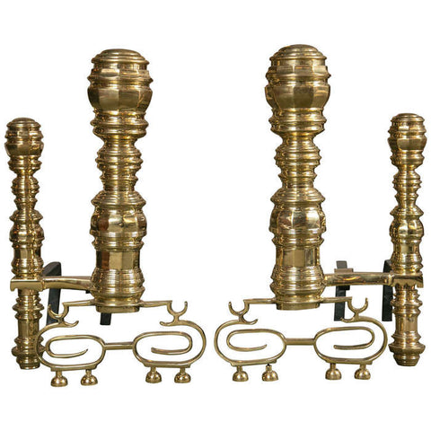 Pair of Monumental Brass Andirons