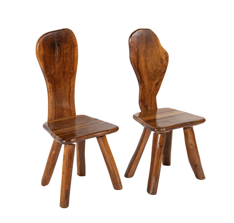 Pair of Olive wood sculptured chairs with iron support designed by Tony Bain.