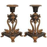 An unusual pair of Regency bronze and ormolu candlesticks.