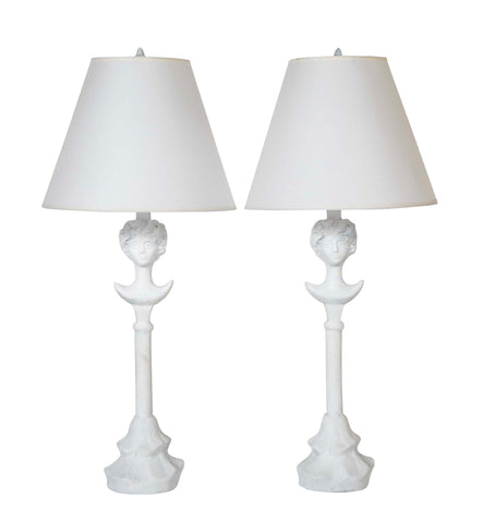 Pair of painted plaster table lamps after the original by Alberto Giacometti, Tête de Femme, designed circa 1933-1934. A classic design with singular presence. Circa 1960's.