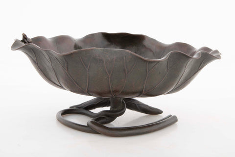 Patinated Bronze Lotus Leaf Shaped Bowl