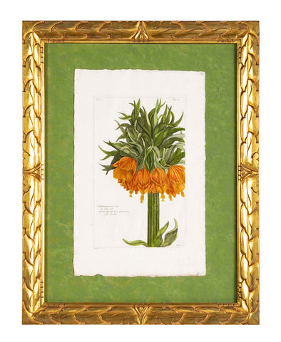 Pierre Joseph Buchoz ( France. 1731 - 1807 ) original hand colored engraving of a Fritillaria Imperialis ( Crown Imperial ) in custom mat and frame. Circa 1780.