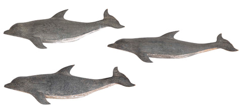 A set of three plaques of carved and painted porpoises by Clark Voorheer Jr.