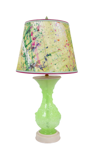 A pair of jade green American pressed glass vases now mounted as lamps with custom shades.. Circa 1920's.