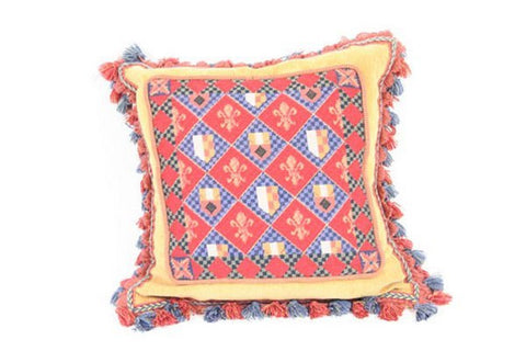 Red/Blue Chenille Pillow Red/blue crest and fleur de lis design chenille pillow.