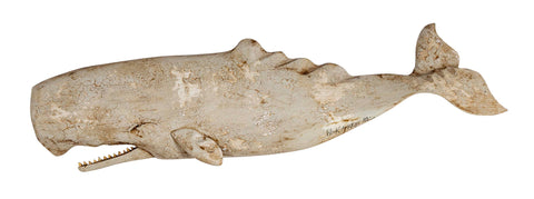 A carved and painted wood sperm whale by Richard van Wicklen (1944 - 2016).  Signed, dated and titled on reverse "Wick Ahrens 10/11/97 Herman Melville's Moby Dick".  Limited Edition, numbered #83/100.  USA.