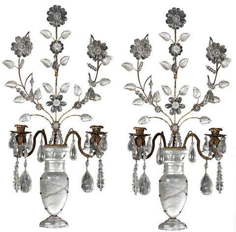 Rock Crystal Sconces Pair of rock crystal, two-light, urn-form sconces (Bagues form).