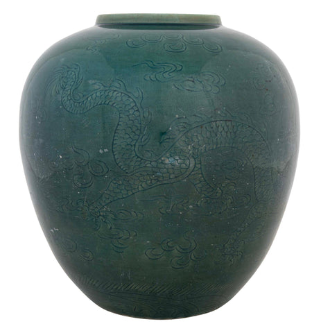 A rubbed pottery vase with swirled lobes in body, by Lestie Matthews. Contemporary. USA