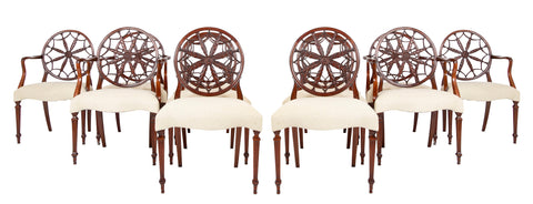 Set of 12 19th Century George III style mahogany wheelback chairs. 6 arms and 6 sides.
