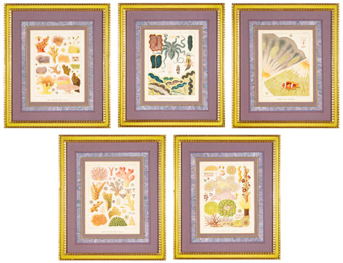 Set of 5 chromolithographs of the Great Barrier Reef by W. Saville Kent now framed in acid free archival materials. Circa 1893.