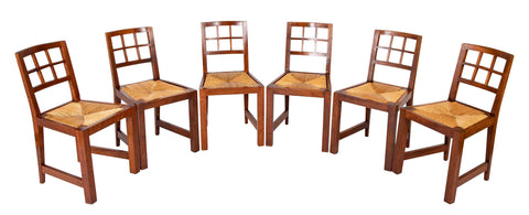 Set of 6 dining chairs attributed to Francis Jourdain ( France., 1876 - 1958 ) in mahogany with rush seats. Circa 1915.