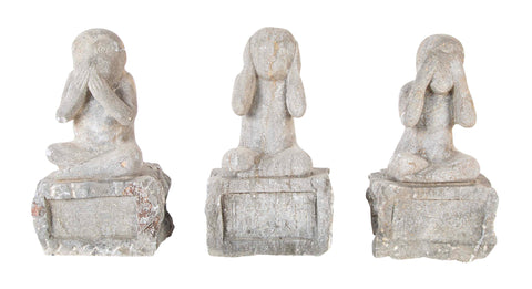 A set of three hand carved stone monkeys "See no evil, hear no evil, say no evil".