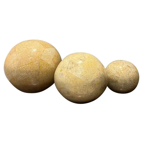 Set of Three Lacquered Tessellated Egg Shell Spheres, Mid 20th Century