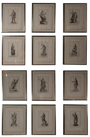 A set of twelve early 18th century engravings of Roman antiquities and/or gods.