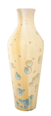 Sevres Baluster Form Vase with Iridescent Blue Speckles on Yellow Background