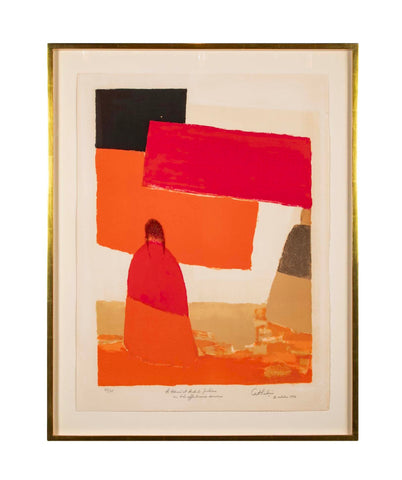 "The Two Indian Girls, Mexico" signed lithograph by Bernard Cathelin ( France. 1919 - 2004 ). Numbered 73/75. Dated "30 Octobre 1974".