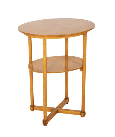 Thonet oval 2 tier birch lamp table designed by Josef Hoffman. With label. Austria. Circa 1920's.