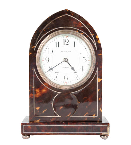 Tortoise Shell Case Clock With Silver Banding Enamel