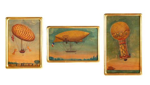 A set of Three Oil on paper on board paintings of three views of hot air balloons by Hector Trotin.