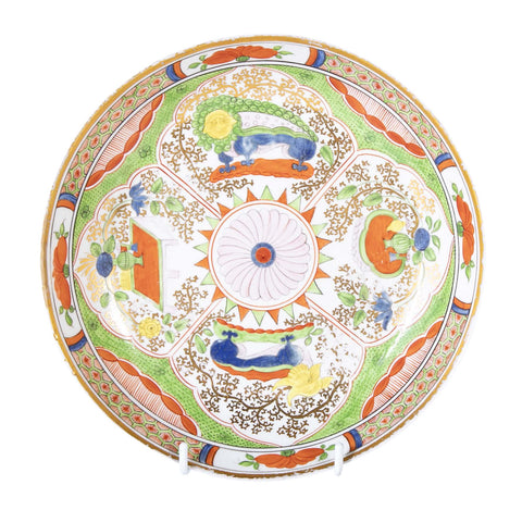 Worcester "Dragons in Compartments" porcelain plate with slightly scalloped rim. England. Late 18th / Early 19th Century.