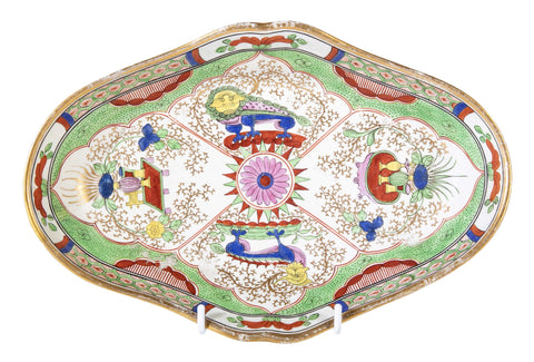 Worcester "Dragons in Compartments" porcelain quatrefoil dish. England. Late 18th / Early 19th Century.