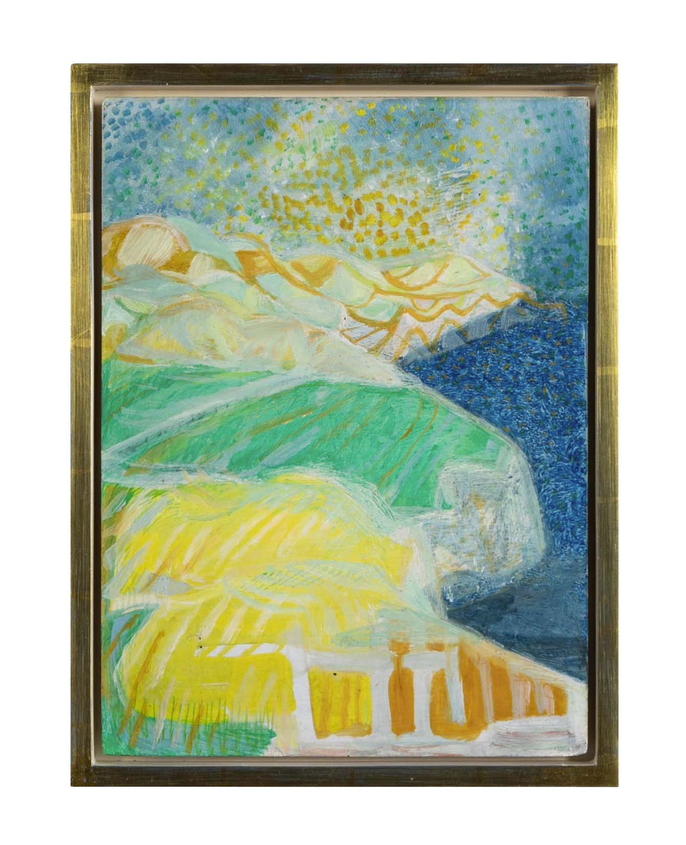 "Purbeck" oil on board by British artist Eileen Guthrie ( 1913 - 2006 ). Inscribed & titled on reverse. Mid 20th Century.
