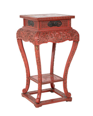 A Cinnabar lacquer stand of square sectioned form, red top censor table with Phoenix. Circa 1900.