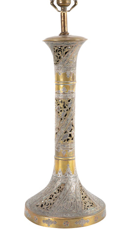Magnificent mixed metal lamp consisting of copper, brass, silver inlay & filigree. Circa 1900.