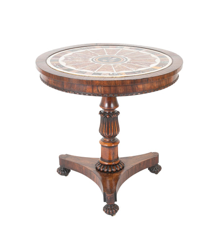 Rosewood center table inset with pietra dura specimen butterflies.   Circa 1830.