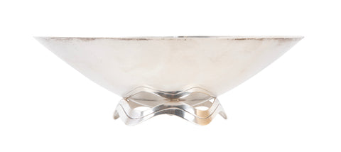 Tiffany round silver bowl with two waving bands as base. Mid 20th Century.