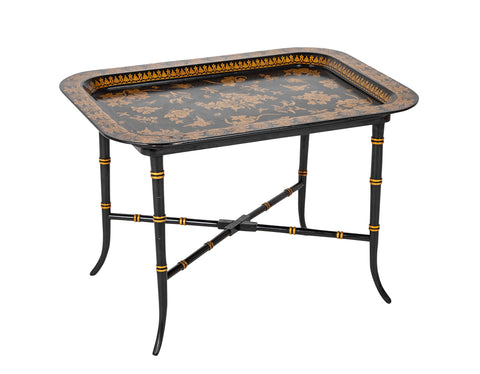 Lacquered and Gilt Decorated Papier Mache Dished Tray Table