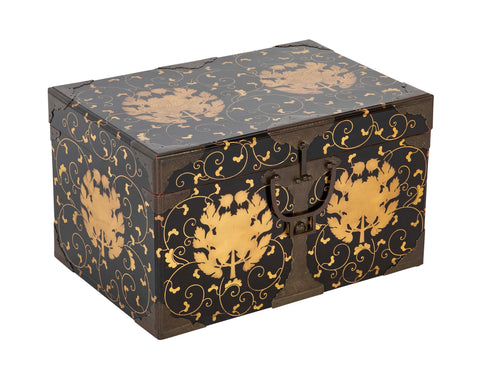 A Pine and Maple Carpentry chest with steel mounts and wood working plains.