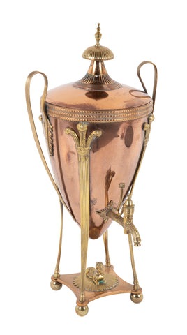Classical Hot Water Copper & Brass Urn with Fleur de Lis and Sphinx Motif